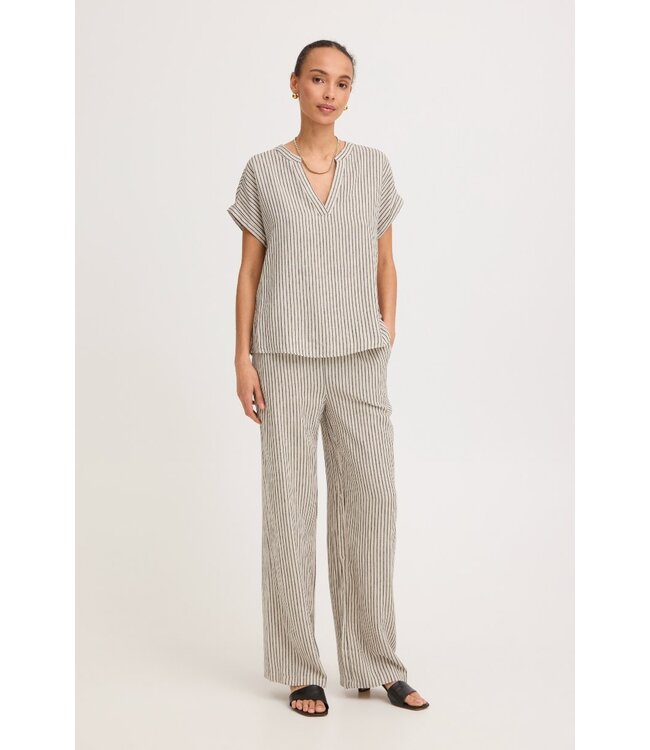 Luchtig, relaxed & stijlvol — de b.young BYFALAKKA Long Pants in Rainy Day Stripe is een comfortabele dames broek met een losse pasvorm en tijdloze uitstraling.