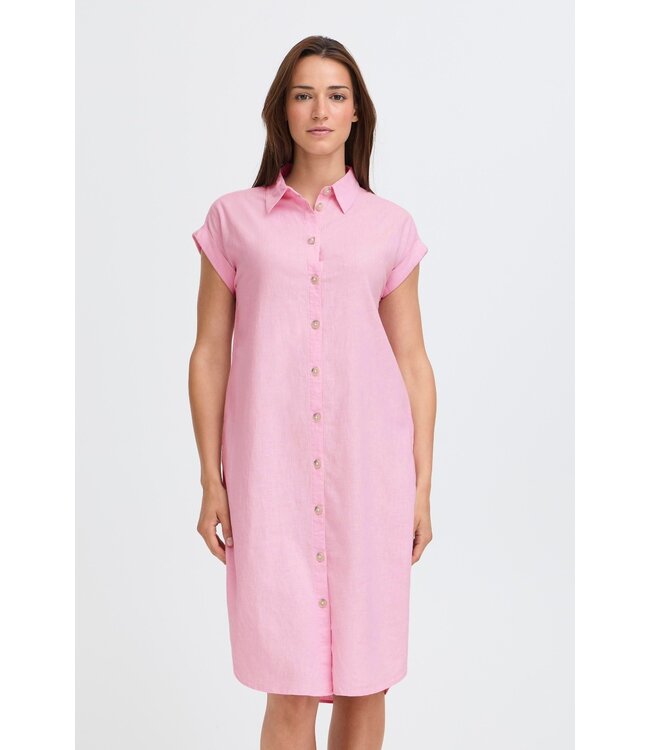 Luchtig, vrouwelijk & zomers — de b.young BYFALAKKA Shirt Dress in Parfait Pink is een comfortabele dames jurk met een frisse uitstraling en losse pasvorm.