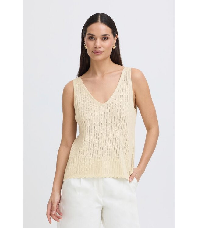 De BYMOBBE Top van BYOUNG is een ribgebreide tanktop met een diepe V-hals en brede schouderbandjes. Het rechtvallende model heeft een losse pasvorm en een korte lengte, wat zorgt voor een moderne, luchtige uitstraling. De zachte viscosemix voelt comfortabel aan op de huid en het mouwloze ontwerp legt de nadruk op het fijne breiwerk. De subtiel gegolfde zoom geeft de top een speels en vrouwelijk detail.
