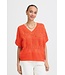 Speels, zomers en krachtig vrouwelijk — de b.young BYNERO V-Neck Pullover in Fiesta is een luchtige dames knit met opvallende kleur en verfijnd structuurbreisel.