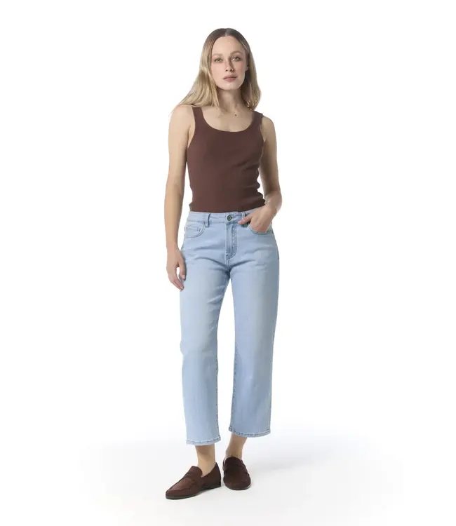 Deze dames jeans in een lichte denimkleur is ontworpen voor ultiem draagcomfort en een flatterende fit. De 7/8 lengte geeft een moderne, luchtige uitstraling terwijl de rechte pijp zorgt voor een tijdloos silhouet. Dankzij de zachte stof met stretch voelt de jeans heerlijk aan en beweegt hij moeiteloos met je mee.