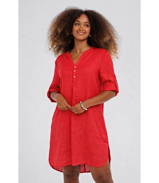 Combineer deze rode linnen dames jurk met sandalen of wedges voor een krachtige zomerse look.