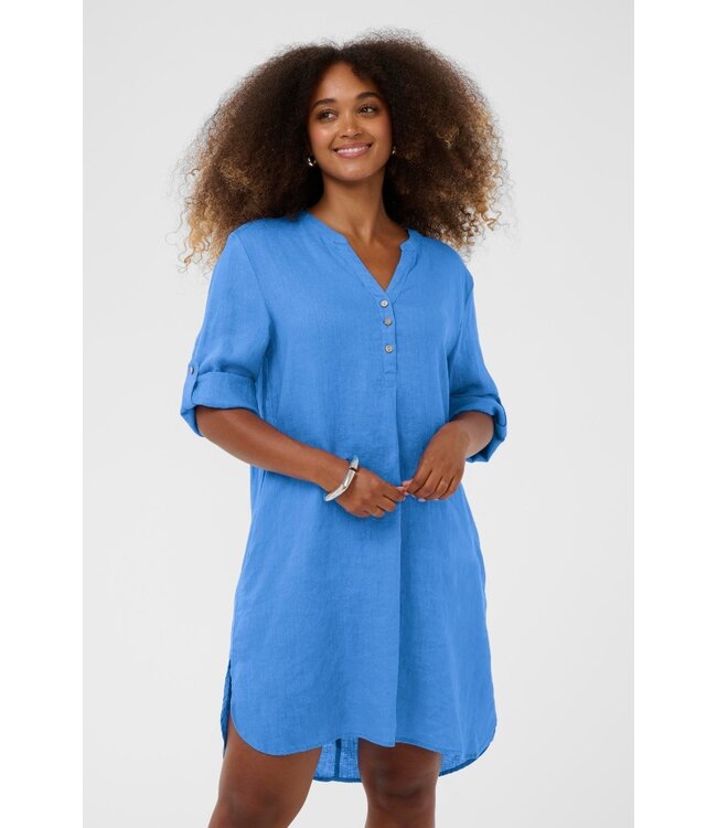 Luchtig, elegant en tijdloos vrouwelijk — de CREAM CRBellis Caftan Short Dress in Palace Blue is de perfecte linnen jurk voor zonnige dagen.