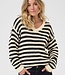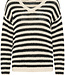 Blijf cosy én on trend met deze gebreide V-hals trui in het klassieke Ancient Scroll and Black Stripe streeppatroon. De losse pasvorm, verlaagde schouders en geribde randen geven deze trui een relaxte, vrouwelijke uitstraling – perfect voor elke dag.