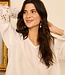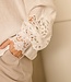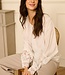De losse fit, V-hals en lange mouwen met verfijnde kanten manchetten zorgen voor een sierlijke, tijdloze uitstraling.