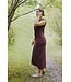 Deze midi-rok straalt pure rust en klasse uit. De diepe bruintint voelt warm en luxueus aan, terwijl de combinatie van verschillende breistructuren zorgt voor een subtiel speels effect. Ideaal voor een elegante, natuurlijke look met een moderne twist.