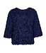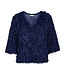 De fluwelen franjes geven de blouse een luxueuze textuur met speelse beweging, terwijl de diepe blauwe tint voor een elegante, moderne uitstraling zorgt.