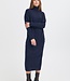 De IHDASILA Dress van ICHI is een gebreide coltrui-jurk in een rijke, diepe navyblauwe tint – een kleur die rust én klasse uitstraalt. De jurk heeft een relaxte pasvorm en lange raglanmouwen, waardoor ze moeiteloos comfortabel aanvoelt en toch verfijnd oogt.