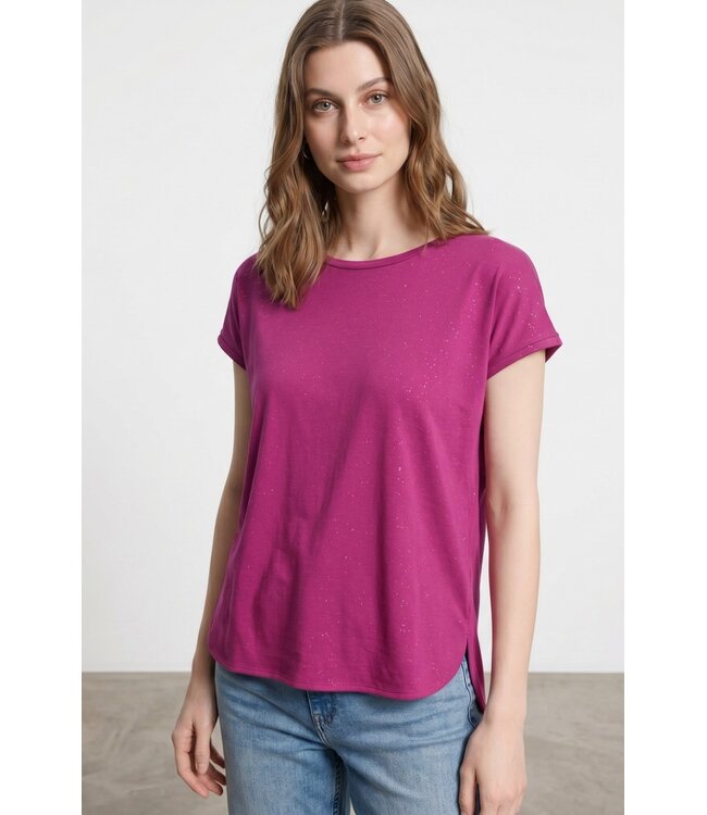 Dit T-shirt straalt energie en vrouwelijkheid uit. De rijke Very Berry kleur geeft je look meteen karakter, terwijl de subtiele zilverdraad zorgt voor een verfijnde sparkle. De losse pasvorm maakt het geheel relaxed en modern.