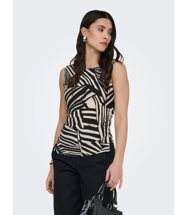 Comfortabel, flatterend en modern — de JDY JDYDEBBIE Top in Sandshell Black Trope is een aansluitende dames top in zachte jersey met een krachtige all-over print.