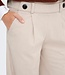 Het model heeft een brede tailleband met elastiek achteraan, wat zorgt voor een comfortabele pasvorm en mooie aansluiting. De sierknopen aan de voorkant en de bandplooi geven de broek een verfijnde uitstraling, terwijl de steekzakken zorgen voor praktisch gemak.
