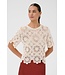 Deze top straalt pure romantiek en elegantie uit. Het opengewerkte bloemmotief geeft een luchtige, zomerse feel, terwijl de fijne pailletten zorgen voor een subtiele sparkle. Perfect voor een vrouwelijke en stijlvolle look.
