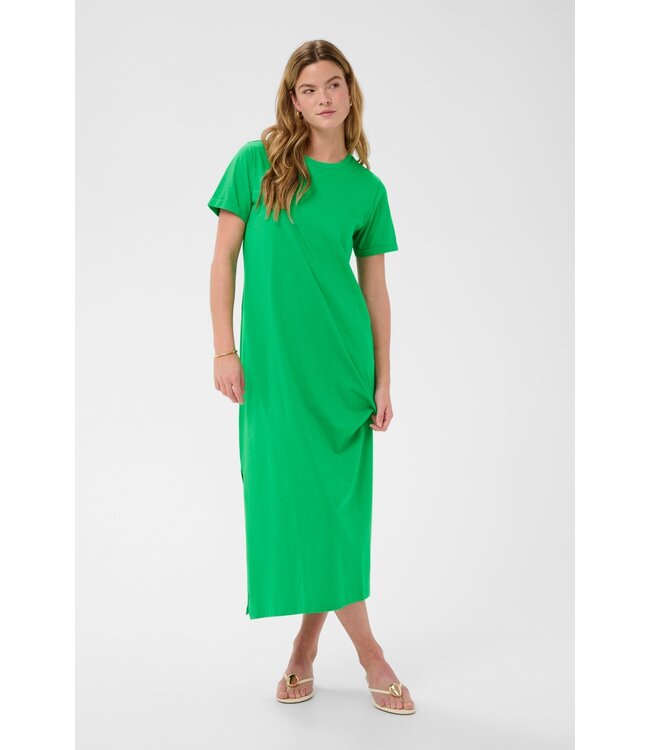 Simpel, fris en eindeloos combineerbaar — de Kaffe KAcelina Dress in Bright Green is een lange T-shirtjurk in zacht katoen met een rechte pasvorm en zijsplitten voor extra bewegingsvrijheid.