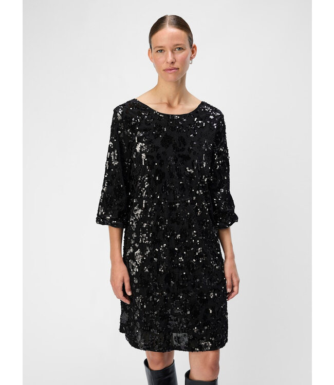 Feestelijk, vrouwelijk en moeiteloos chic — de OBJEMINE LO 3/4 Short Dress van Object is een elegante paillettenjurk die elke gelegenheid laat schitteren.