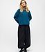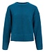 De rijke blauwtint straalt diepte en rust uit, terwijl het subtiele stikseldetail en de geribde boorden de trui een moderne twist geven.