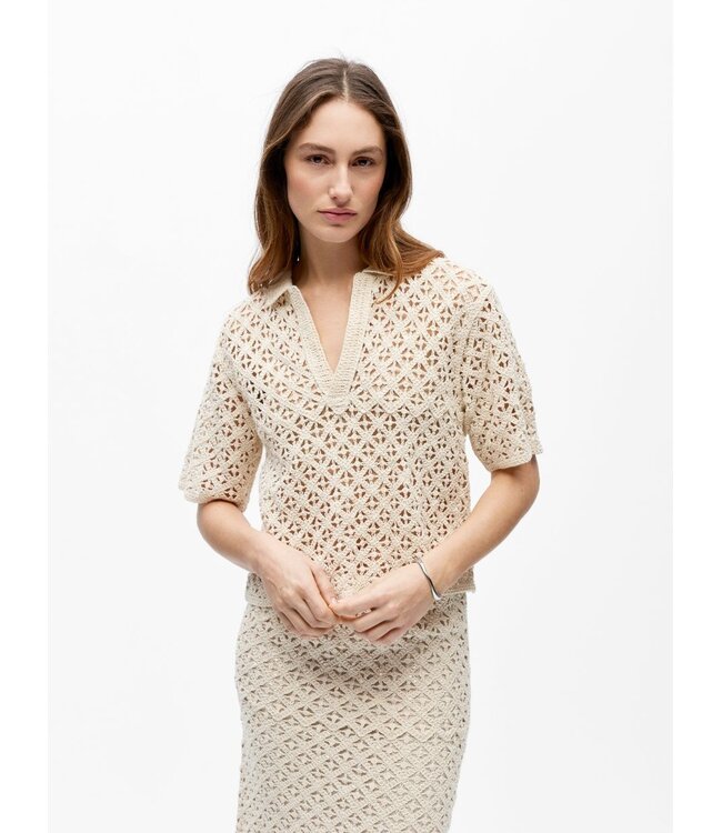 Combineer deze crochet polo met de bijpassende OBJMASI Knit Long Skirt voor een elegante set.