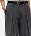 Elegante pantalon met hoge taille, lange wijde pijpen en geplooid detail aan de voorkant. Uitgevoerd in een luxueuze dark grey melange stof. Voorzien van zijzakken, riemlussen en een haakknoopsluiting met rits.