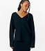 Deze gebreide trui in de kleur Zwart is de perfecte allrounder voor elk seizoen. Met zijn V-hals, lange mouwen met verlaagde schouders en relaxte pasvorm straalt hij moeiteloos comfort en stijl uit. De zachte stof voelt heerlijk aan op de huid, terwijl de duurzame samenstelling met LENZING™ ECOVERO™ viscose een bewuste keuze is.