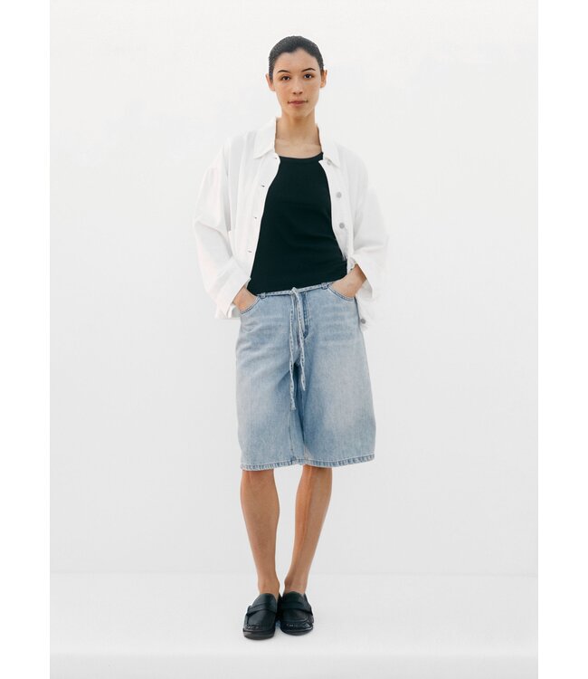 Deze denim short straalt een relaxte en moeiteloze stijl uit. De langere lengte en losse pasvorm geven een moderne twist aan de klassieke jeansshort. De lichte wassing zorgt voor een frisse, zomerse look die perfect past bij casual en vrouwelijke outfits.