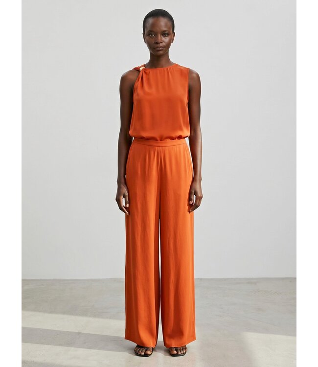 Deze broek ademt warmte en verfijning. De potters clay kleur — een rijke mix van terracotta en roestoranje — geeft je look een stijlvolle, zonnige en tegelijk krachtige uitstraling. Perfect voor wie houdt van natuurlijke tinten met een luxueuze feel.