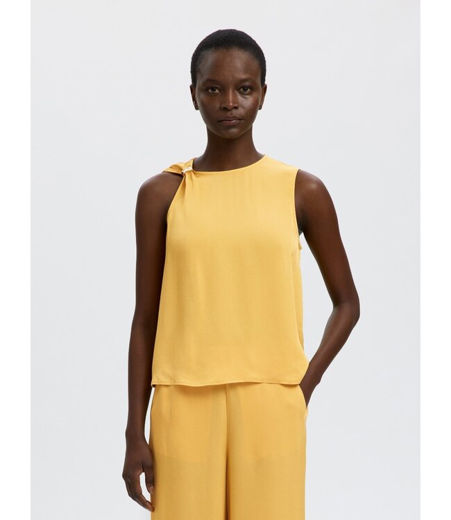 Zacht, zonnig & verfijnd — de SLFLAURA top van Selected Femme in ochre brengt warmte en elegantie samen in één tijdloos silhouet.