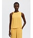 Deze top ademt pure zachtheid en subtiliteit. De ochre kleur — een warme, gedempte geeltoon — voelt licht, zomers en stijlvol tegelijk. De lichte glans van de stof geeft een luxueuze uitstraling zonder te overdrijven.
