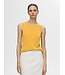 Deze top straalt warmte en eenvoud uit. De rijke okergele kleur brengt meteen leven in je outfit, terwijl de fijne knit structuur zorgt voor een zachte, verfijnde uitstraling. Perfect voor een frisse, zomerse look met karakter.